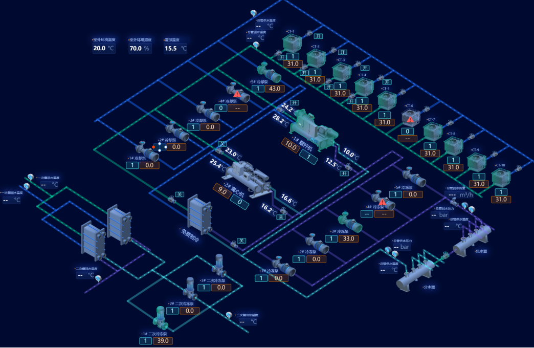 為解決原有系統(tǒng)能源浪費(fèi)現(xiàn)象,飛奕科技對水泵、冷卻塔等進(jìn)行了調(diào)頻管理與群控優(yōu)化。同時,采用智能控制策略,能夠持續(xù)學(xué)習(xí)并判斷辦公大樓負(fù)荷變化,自動完成溫度調(diào)節(jié),從源頭上避免了過多能量損耗,實現(xiàn)了對空調(diào)設(shè)備的精細(xì)化、分區(qū)化、時段化智能控制,避免了無人區(qū)域、非辦公時段的無效能耗,讓每一度電都“物盡其用”。